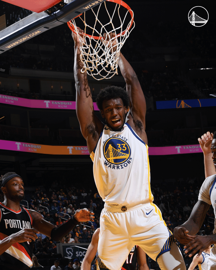库里等主力都不打,勇三疯仍旧火热来袭,第三节35-15打爆开拓者。