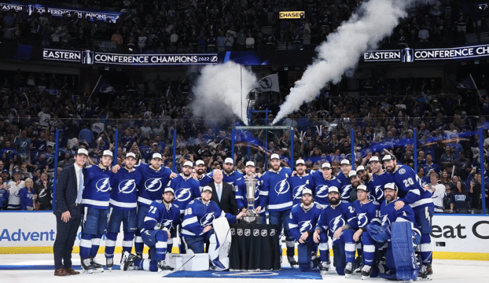 24直播网06月15日讯 本赛季NHL斯坦利杯总决赛,坦帕湾闪电连续3年晋级总决赛,此前他们均夺冠,这次遇到的是科罗拉多雪崩的挑战。闪电已经在季后赛系列赛中取得十一连胜,再赢一场他们就可以连续3个赛季捧起斯坦利杯。就在近期,NBA传奇球星詹姆斯也来观战,而且还触摸了斯坦利杯。