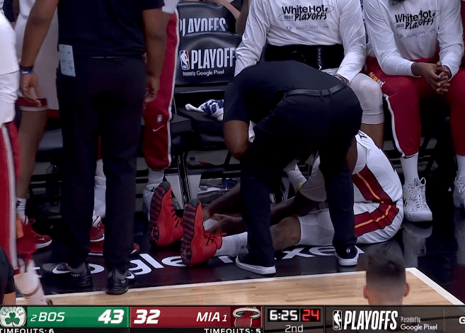 24直播网05月18日讯 ,NBA季后赛分区决赛正式打响,凯尔特人反客为主,热火打得很被动,第二节场上发生意外伤病事件,热火悍将PJ-塔克无接触受伤倒地,右脚受伤,一瘸一拐离场并且返回更衣室,下半场继续首发出战,太硬了。