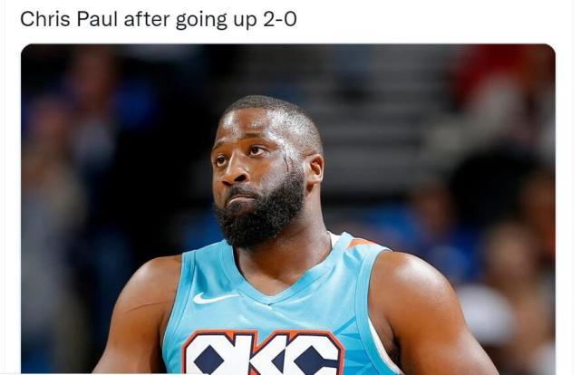 2-0领先被翻盘的魔咒,依然困扰着保罗。名记Tim Reynolds写道:“今晚输掉这场比赛后,NBA过去13次2-0领先被翻盘的系列赛,保罗占了其中5次!”还有球迷晒出前NBA球员费尔顿的照片,调侃这就是2-0领先后的保罗。