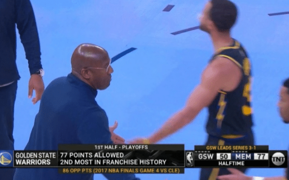 24直播网05月12日讯 ,NBA西部半决赛灰熊主场迎战勇士。结果此役上半场打出了令人不可思议的局面。灰熊第二节大爆发,单节打了勇士39-22,半场结束已经77-50领先勇士多达27分!而半场丢分77分,也创下勇士队史第二糟糕半场丢分纪录,堪称耻辱!