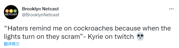 今天欧文在直播中表达了他对黑子的看法,欧文说道:黑子让我想起了蟑螂,因为只要一开灯,它们就会消失不见。(意为今天直播中并没有出现太多黑子)