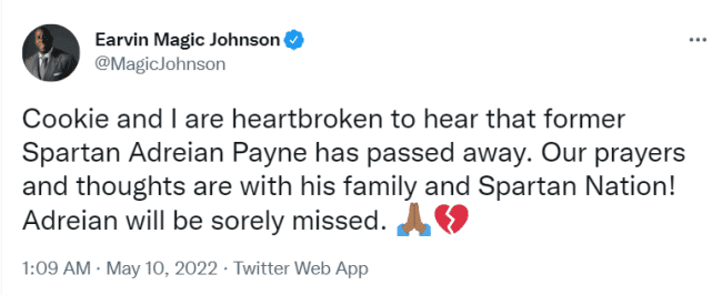 佩恩来自密歇根州立大学,和勇士球员追梦-格林一起帮助球队拿过冠军。大学表现最好的是2013-14赛季,佩恩场均16.6分7.3篮板。追梦获知佩恩被枪杀消息后,更新社媒,晒出了四个心碎的表情。同样来自密歇根州大的“魔术师”约翰逊、小贾伦-杰克逊和迈尔斯-布里奇斯等球员也纷纷更新社媒,悼念校友佩恩。