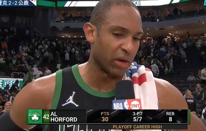 但末节比赛,绿军突然反扑!老将霍福德中投命中,斯玛特投进三分。接着,霍福德面对字母哥残暴隔扣2+1!这球彻底激发了绿军的士气。接着,字母哥连续打成,但关键时刻霍福德用三分球和2+1与字母哥对飙!这位36岁的老将迸发了巨大能量,同时也感染了队友。