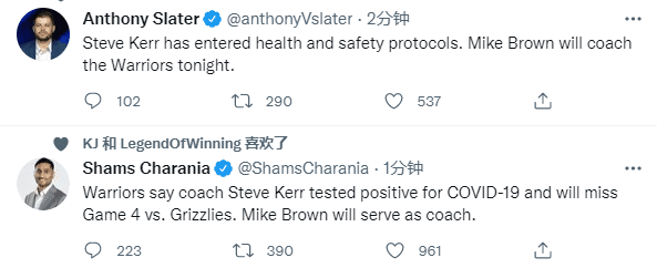 24直播网05月10日讯 ,NBA季后赛勇士再战灰熊,G4大战赛前勇士遭重创,据名记shams以及勇士跟队记者报道,科尔触发联盟的健康与安全协议,并且检测结果成阳性,感染新冠被隔离,勇士助教迈克-布朗代替科尔执教G4。