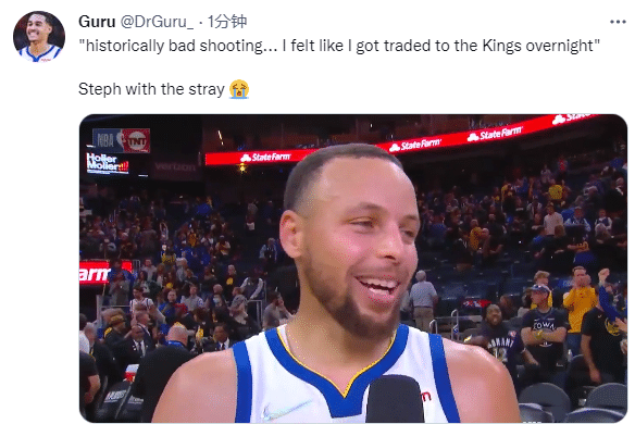 勇士赢球赛后,库里接受采访时谈到迈克-布朗顶替科尔执教,库里笑着调侃:你们谈论历史上糟糕的投篮,这已经创造了历史,布朗24小时内当了两队主教练,我感觉我们一夜之间被交易到了国王,但显然我们为他感到高兴。