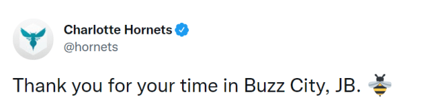 24直播网04月23日讯 ,夏洛特黄蜂官方宣布,球队已经正式解雇主教练詹姆斯-博雷戈。官方社媒上写道:“感谢您为Buzz City(蜂鸣之城)所做的一切,JB(博雷戈)。”