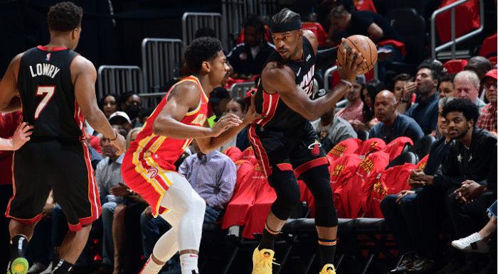 第一节,巴特勒击地给顺下阿德巴约,后者接球暴扣。利用阿德巴约的挡拆,巴特勒抛投打进。巴特勒对抗身旁的亨特,他强势打成2+1,但也痛苦倒地,短暂回到替补席之后归来,巴特勒加罚命中。特雷杨想要连线加里纳利,被巴特勒直接抢断,被clear-path犯规之后巴特勒获得两罚一掷的机会,他两罚全中。阿德巴约传球,巴特勒空切扣篮。巴特勒投桃报李,助攻阿德巴约打进。希罗反击之后抛传,巴特勒双手扣篮。首节巴特勒的表现非常强势,单节11分5板2助攻。
