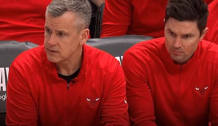 最后阶段,双方都撤下主力。坐在板凳席上的德罗赞,目光呆滞神情沮丧,而公牛众将也都脸色凝重,主帅多诺万强装镇定,但身边的助教一脸愁容。而雄鹿一边,球员们表情非常轻松,因为这场胜利来得有些太容易了。