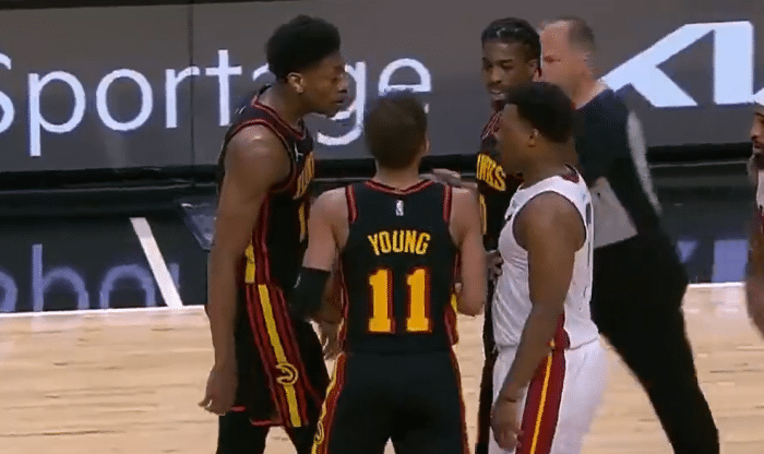 双方上半场比赛打得非常胶着,巴特勒上半场发挥出色拿下21分,而老鹰方面特雷杨也不遑多让拿下18分,亨特得到11分。两队在比赛中也再次出现了非常火爆的冲突,洛瑞和亨特发生口角,在被队友分开之后依然互喷喋喋不休,被裁判双双吹罚技术犯规。半场结束,热火56-54领先2分。