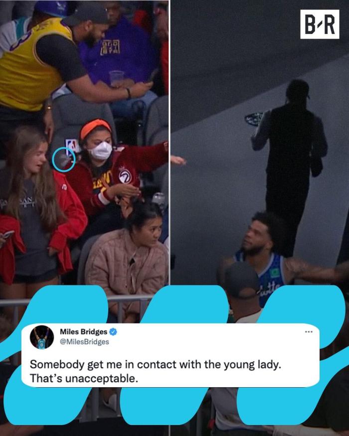 赛后,布里奇斯发推写道:谁能来帮我联系一下那位(被砸的)年轻女士,那是不可接受的。