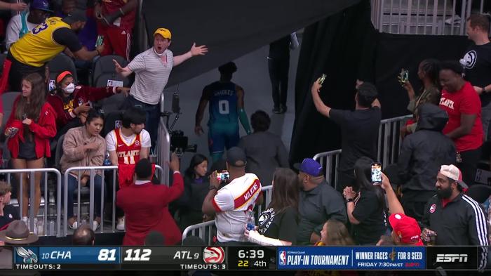 NBA附加赛生死战,黄蜂客场103-132惨败老鹰,无缘季后赛从而赛季结束,末节黄蜂悍将布里奇斯不满判罚,冲裁判怒吼咆哮,连续吃到两次技术犯规被驱逐离场,离场时布里奇斯情绪失控,怒扔牙套砸到女球迷,赛后布里奇斯公开道歉,直言:这种行为是不可接受的。