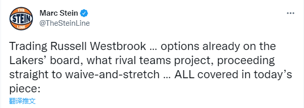 MarcStein还报道,如果无法达成合适的交易,湖人可能通过延伸支付条款裁掉威斯布鲁克;下赛季威少拥有价值4700万美元的球员选项。