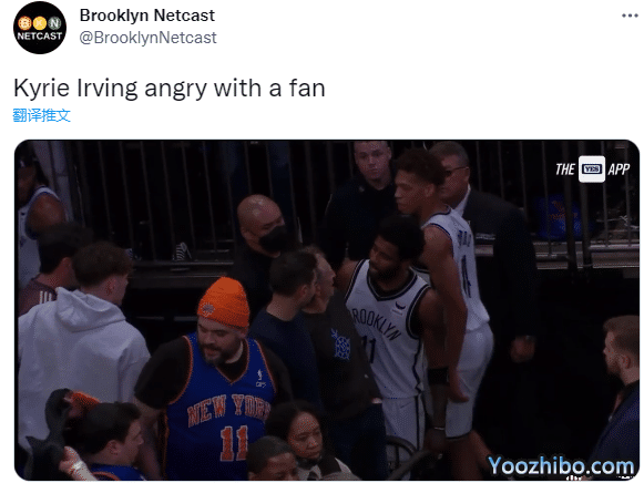 24直播网04月07日讯 ,篮网和尼克斯纽约德比正式打响,杜兰特和欧文带队在麦迪逊花园球馆打比赛,上半场篮网50-67落后17分,中场休息时,欧文和纽约球迷发生口角,返回更衣室前中途折返,和一位球迷发生争执。