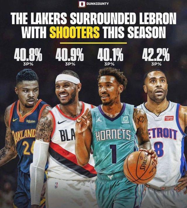 包括安东尼在内的4名新援,能给湖人带来足够的外线火力,而这恰恰是上赛季湖人的一大短板。数据显示,2020-21赛季,安东尼的三分命中率达到40.9%,贝兹莫尔的三分命中率是40.8%,蒙克的三分命中率是40.1%,埃灵顿更是高达42.2%。有了这4位擅长三分投射的球员加盟,湖人的外线进攻问题确实有望得到解决。2020-21赛季,湖人的三分命中率只有35.4%,在30支NBA球队里排名第21位。