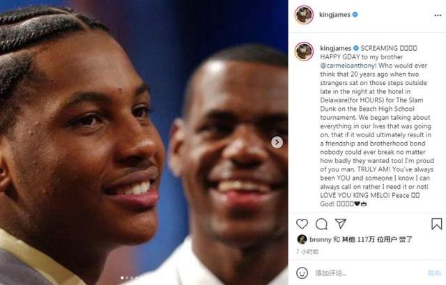 而安东尼在今天也迎来了自己37岁的生日,在联盟征战了18个年头,安东尼能够在季后赛的过程中迎来自己37岁生日真的是一个不错的结果,因为很早以前安东尼就开始陷入无球可打的局面了。詹姆斯也适时在社交媒体发布了祝福安东尼生日快乐的动态,詹姆斯直言自己和安东尼20年前就已经相识,而这么多年来他们积累了很好的兄弟情,至今为止感情也是越来越深厚。