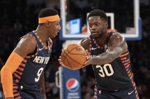看看罗斯在这轮系列赛打出的数据吧,场均24.4分5篮板5助攻,投篮命中率和三分球命中率均保持在五成之上,罚球命中率更是未丢一球,再来看一下本该是罗斯辅佐的两位年轻球员的数据吧,兰德尔三场6/24,5/16,2/15,合计13/55,23.6%的命中率。 巴雷特三场6/15,5/14,2/9,合计13/38,34.2%的命中率。面对这样的队友,罗斯也只能说一句:“真的带不动啊!”