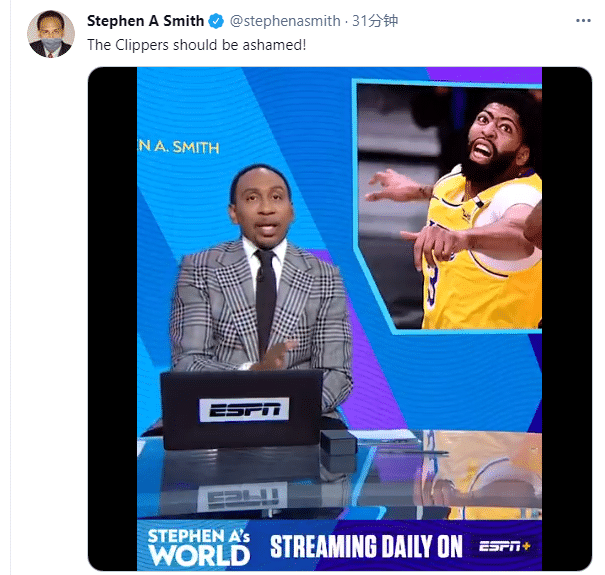 A-史密斯还转发自己的视频,发推写道:快船队应该感到羞耻!