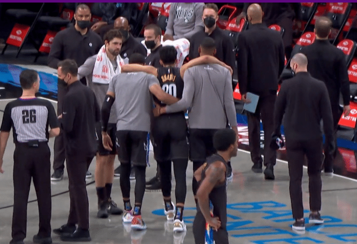 第二节的比赛开始后,奇才这边替补阵容依然是没有手感,篮网轰出了一波21:6的小高潮反超了比分,半场打完篮网领先7分,上半场的比赛奇才首发阵容表现非常出色,但是无奈的是球队的替补阵容只得到了2分,只有洛佩兹拿到了2分,其他上场的球员没有人得分,格里芬上半场在防守端的表现不错,但是进攻端他并有获得太多的机会,半场比赛临近结束前,哈登与对手撞到了一块,坐在地上久久未能起身,在缓了很长时间后他与队友返回了更衣室。