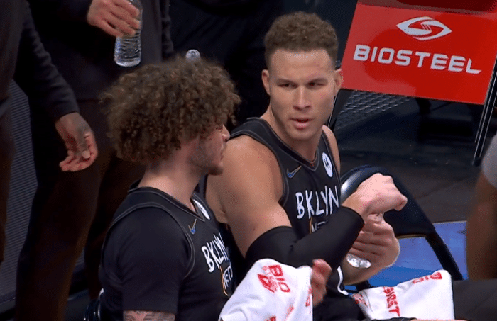 第四节的比赛开始后,格里芬假动作晃飞洛佩兹,他杀入内线完成暴扣,乔哈里斯三分命中,这段时间哈登有意地去找格里芬,而且两人也是在不断沟通,泰勒-约翰逊三分也有,篮网将分差扩大到了11分,末节比赛还剩下8分多钟的时候,格里芬被替换下场,时间差不多了,格里芬本场比赛不会再打了,格里芬首秀打了15分钟2投1中得到了2分2篮板1盖帽的数据,格里芬的得分是通过扣篮得到,要知道格里芬上次扣篮是在2019年12月6日对阵步行者的比赛中,这也是时隔472天后格里芬再次通过扣篮得分。