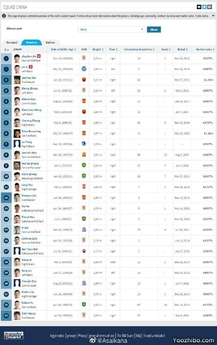 24直播网03月29日讯 德转中国区管理员朱艺透露了国足vs阿曼的23人大名单,吴曦顶替受伤的金敬道入选。