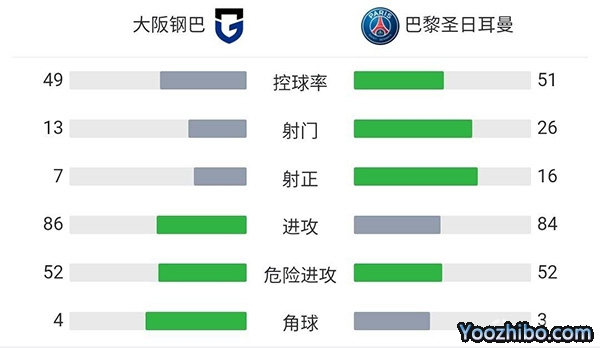 全场比赛结束,最终巴黎圣日耳曼6-2击败大阪钢巴。